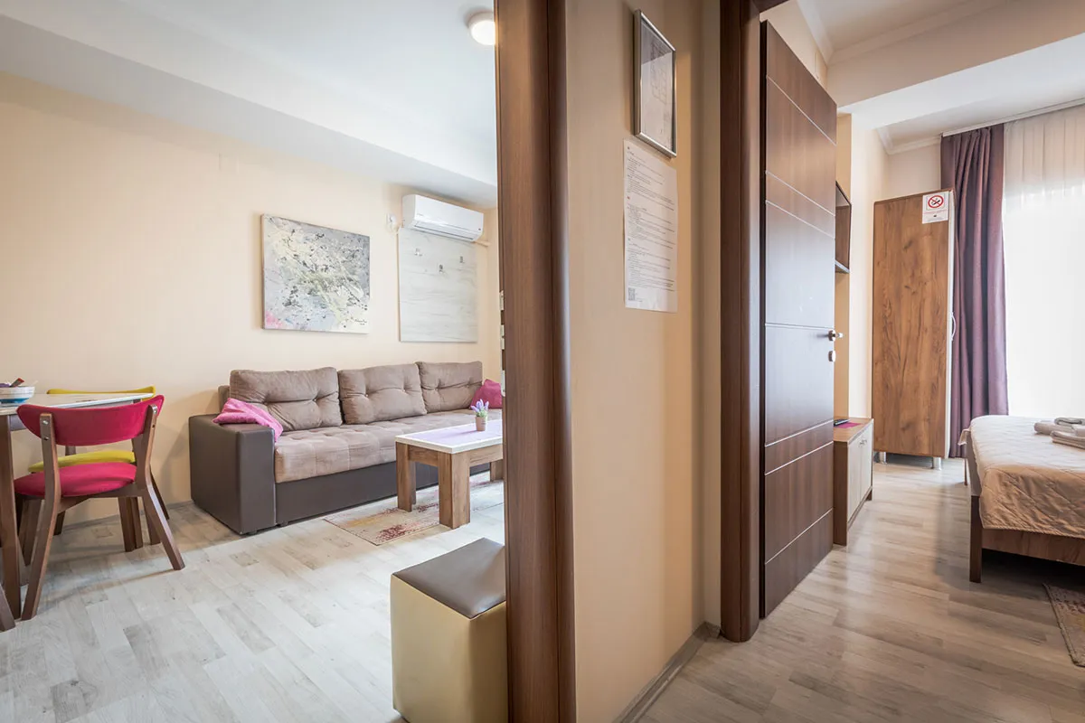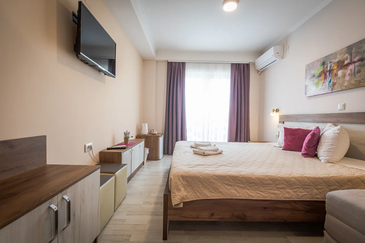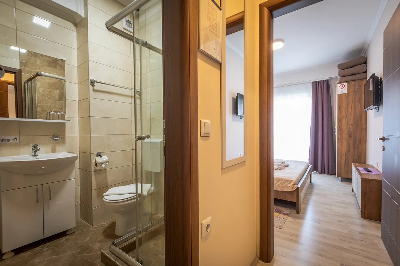 Кујна, клима, тоалет со туш, LED телевизори, WI-FI, и.т.н. се составен дел од секоја соба.