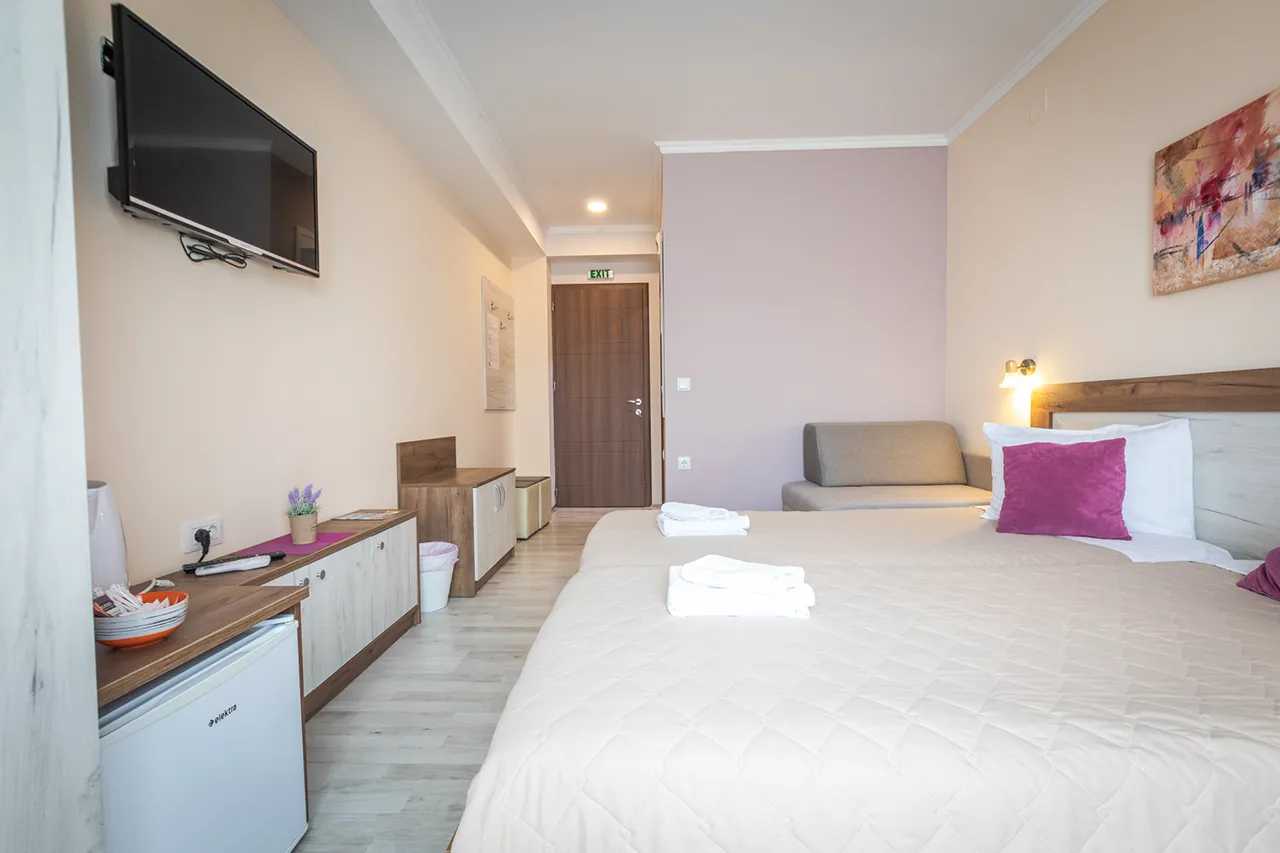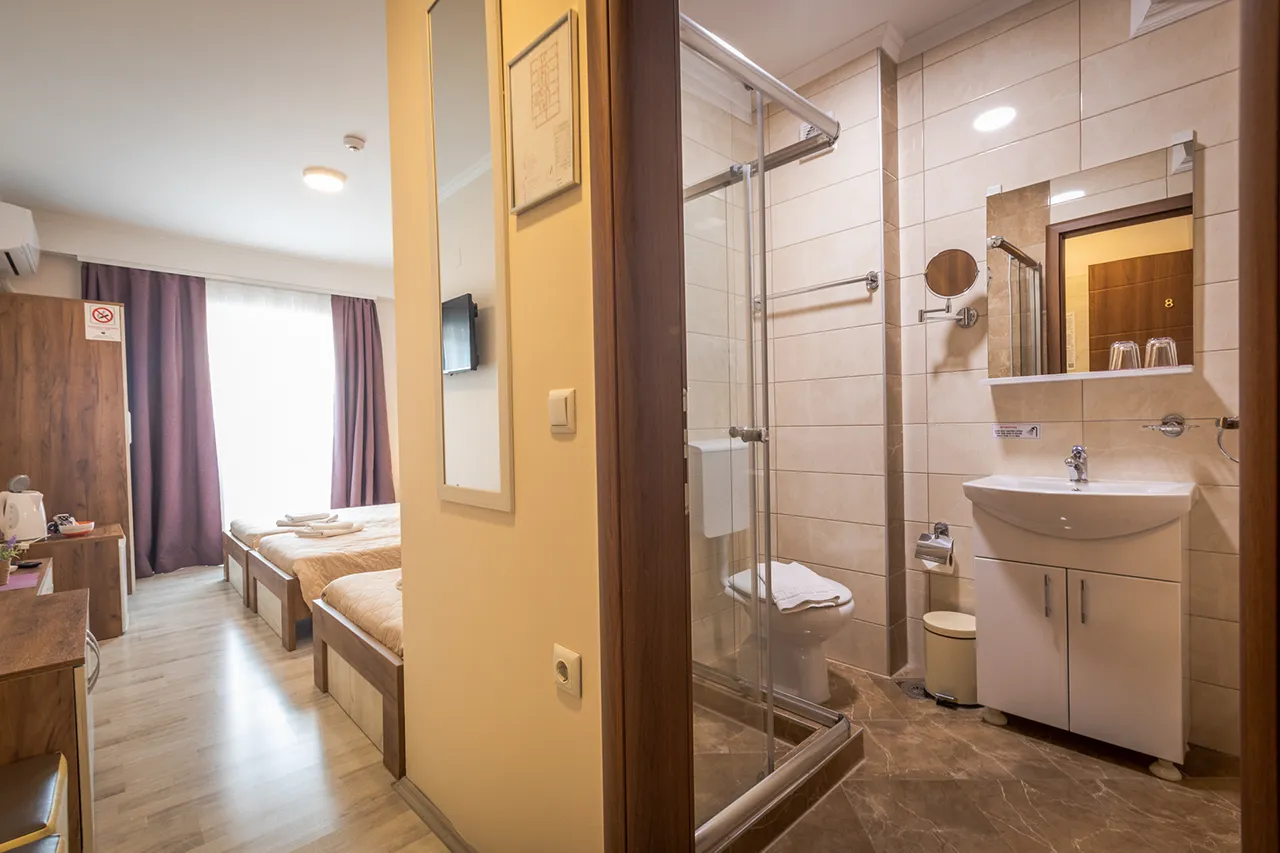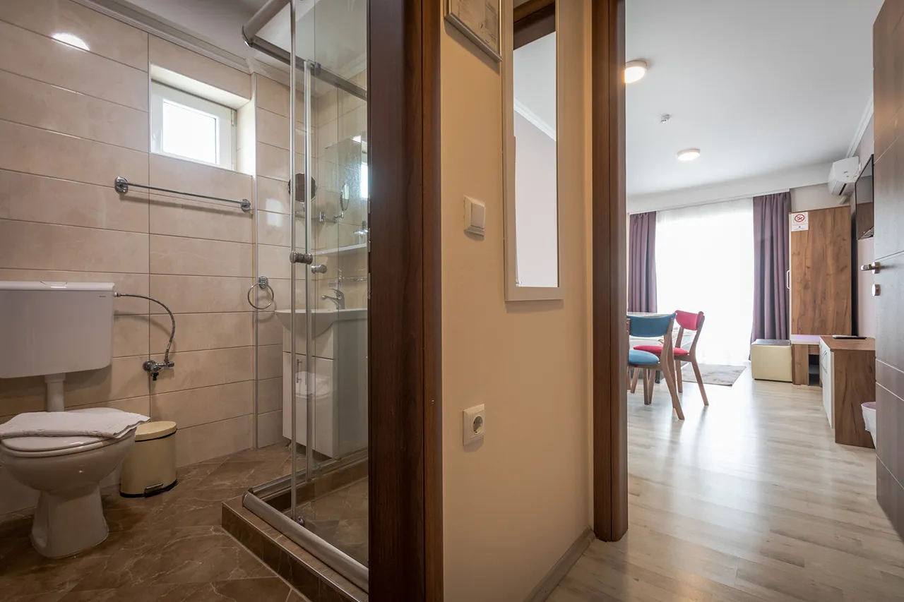 Кујна, клима, тоалет со туш, LED телевизори, WI-FI, и.т.н. се составен дел од секоја соба.