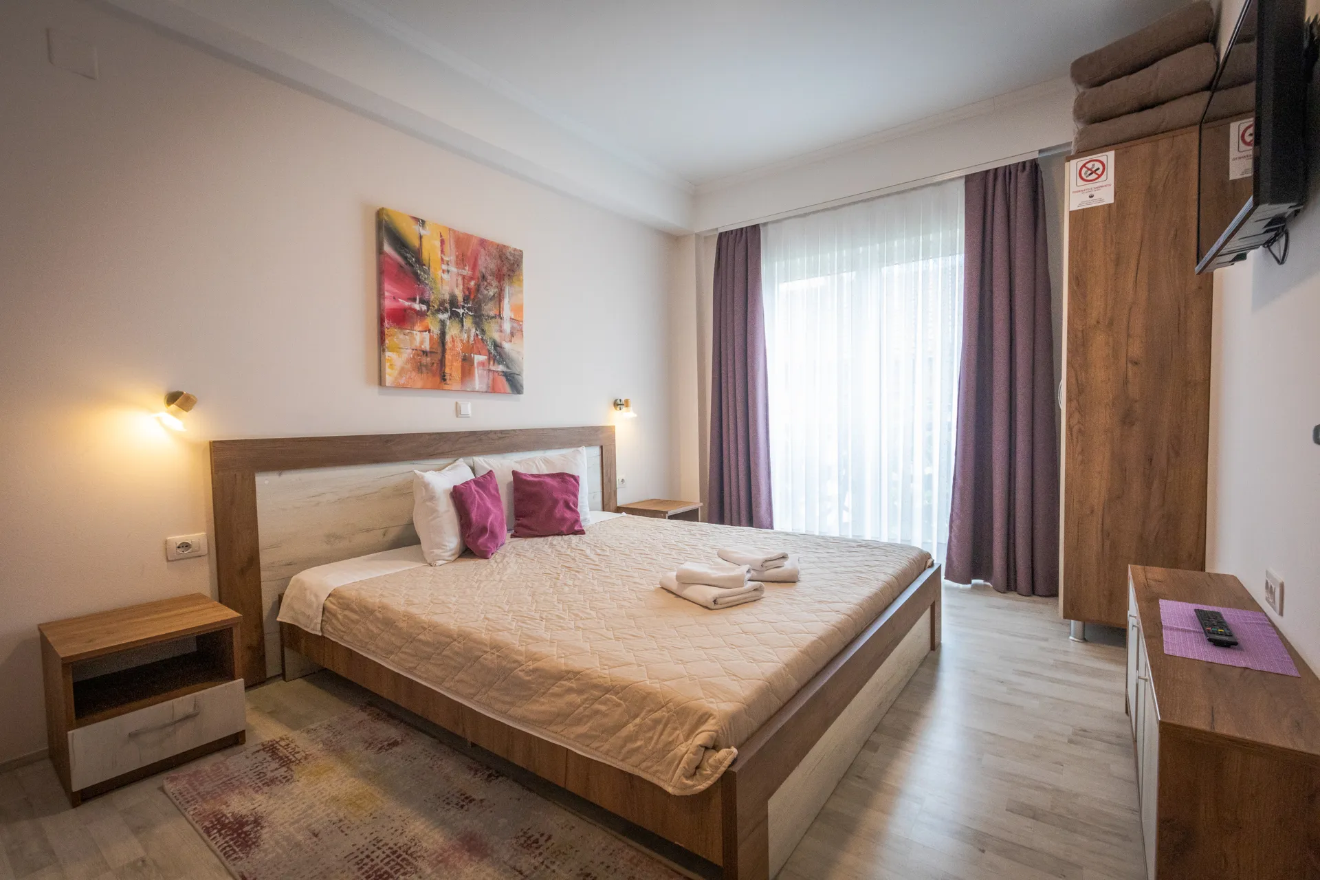 Располага со 4 типологии на соби и апартмани, комплетно опремени кои ги исполнуваат сите услови.